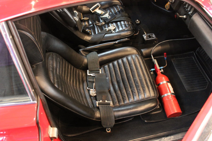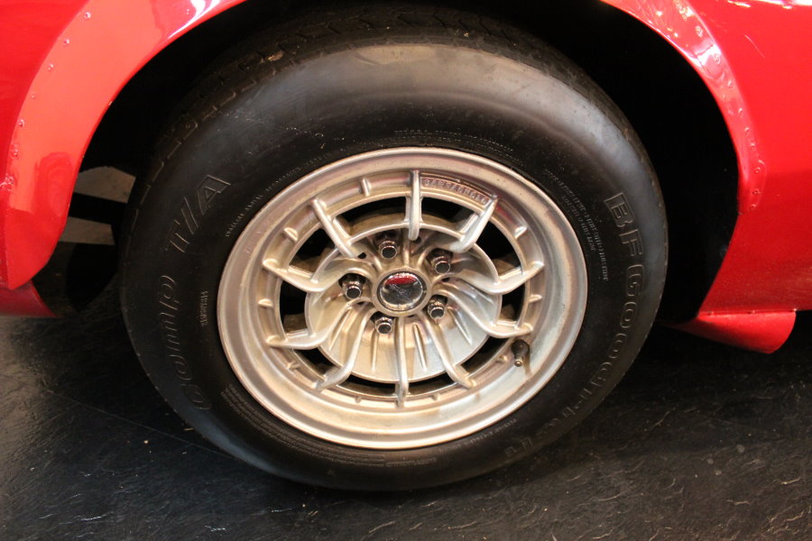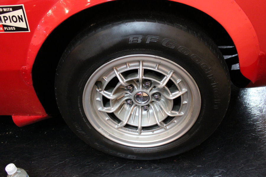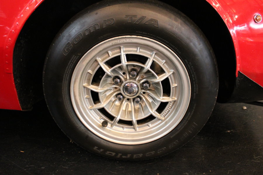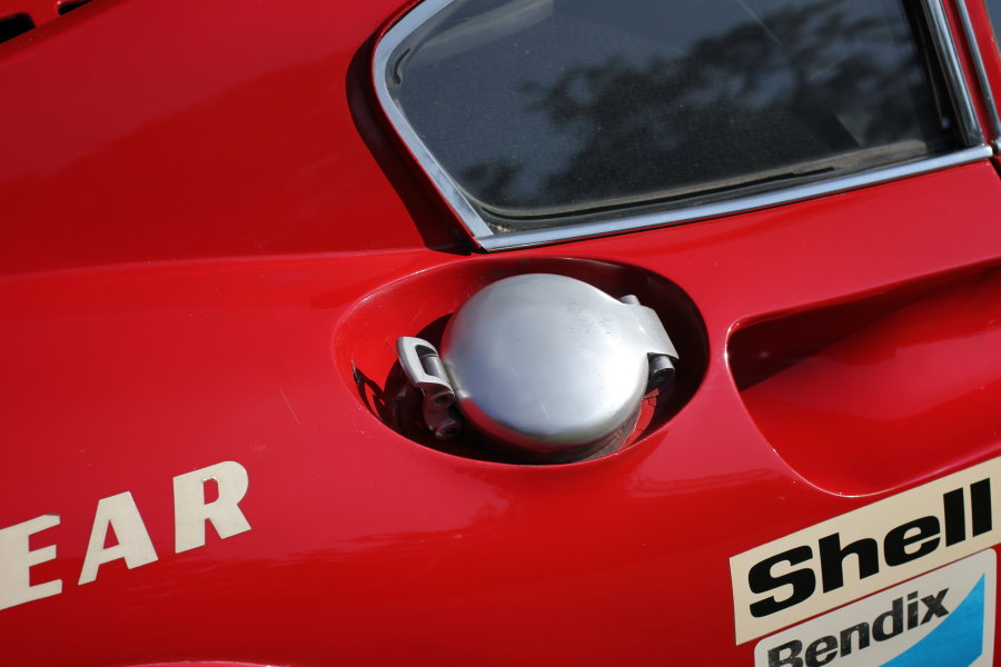 Modifications include an aluminum front hood with 24 rather than 6 openings for additional cooling, fender flares, brake cooling ducts for all four wheels, 7.5 inch Campagnolo wheels, additional cooling fans, Monza style quick release fuel cap, Enlarged fuel tank filler opening, Large diameter fuel tank transfer tubing, Additional 180 liter fuel cell with two fuel pumps was installed in the rear trunk, Roll bar, Headlight covers, Space saver spare tire, and Front spoiler. The engine remained in standard specification with the exception of a first oversize bore and free flowing exhaust.