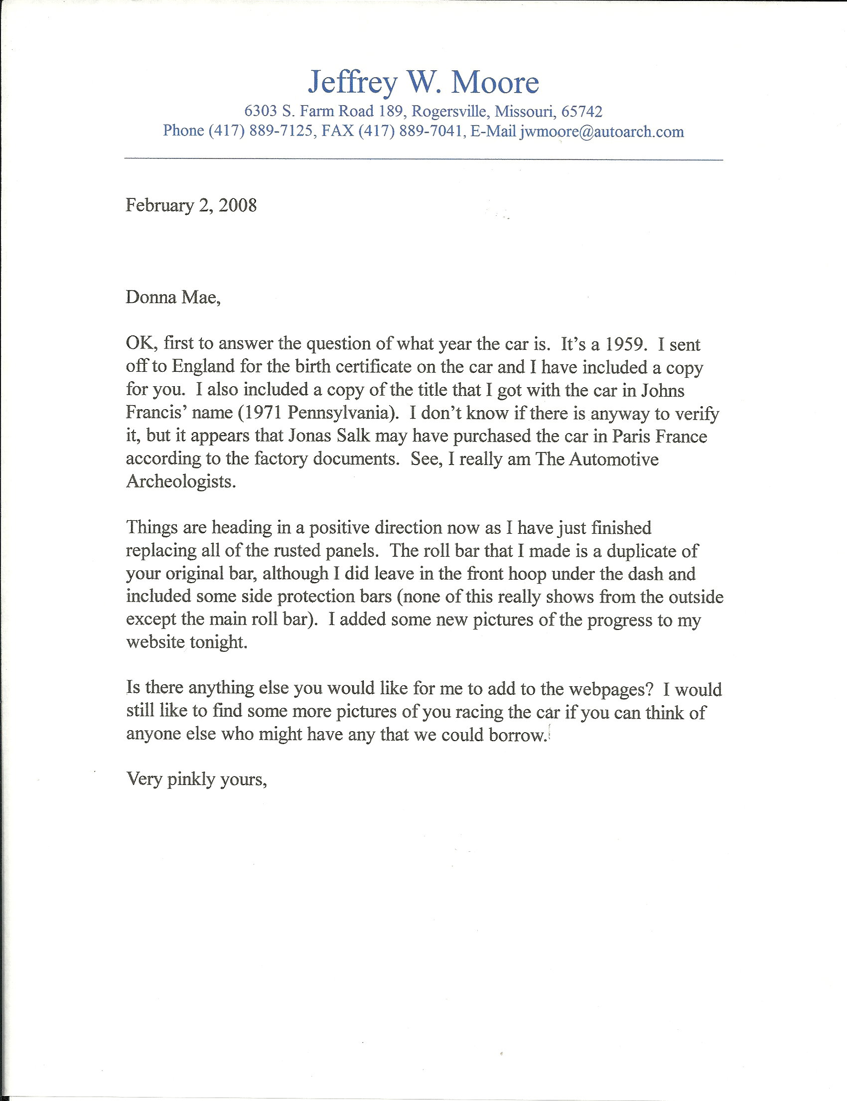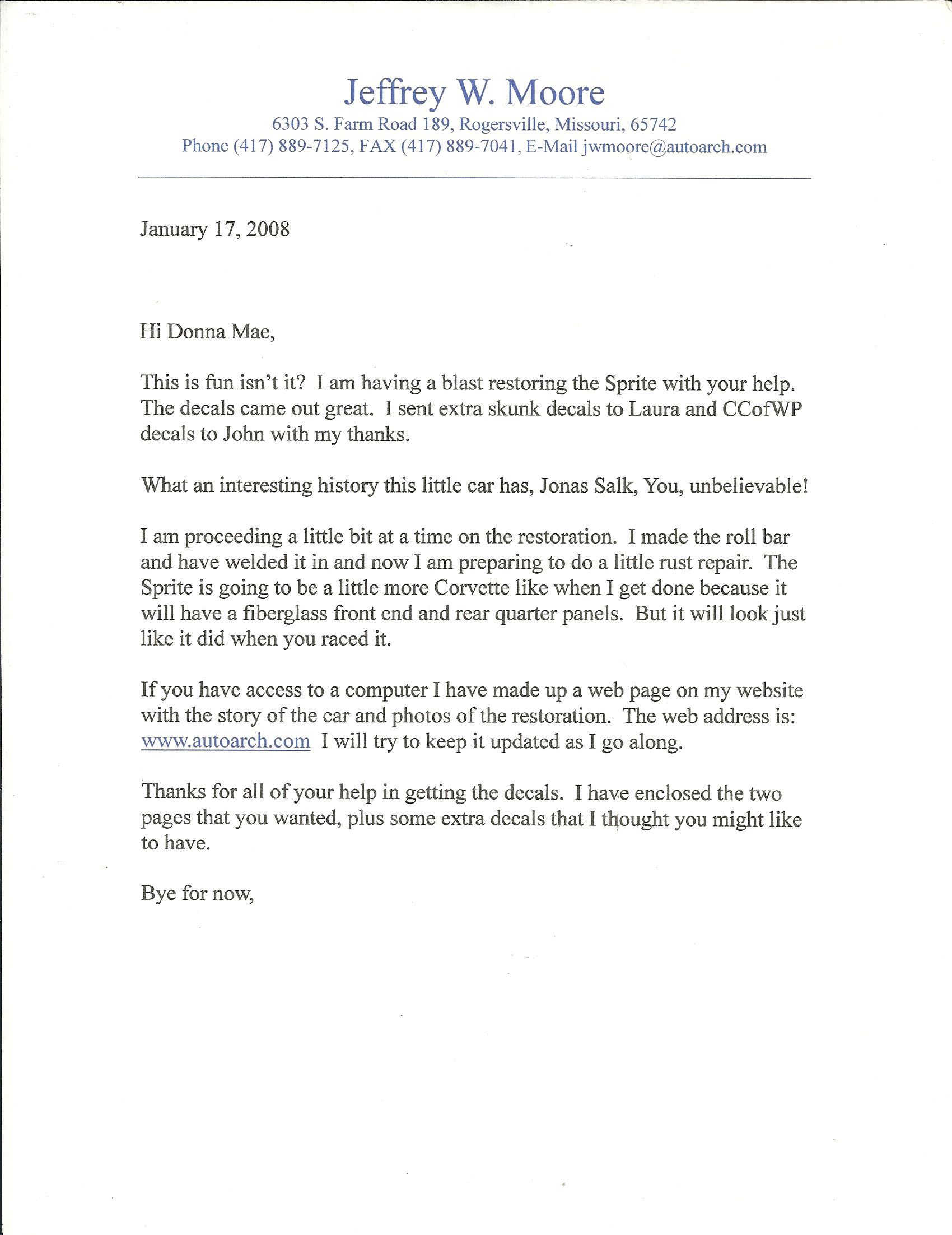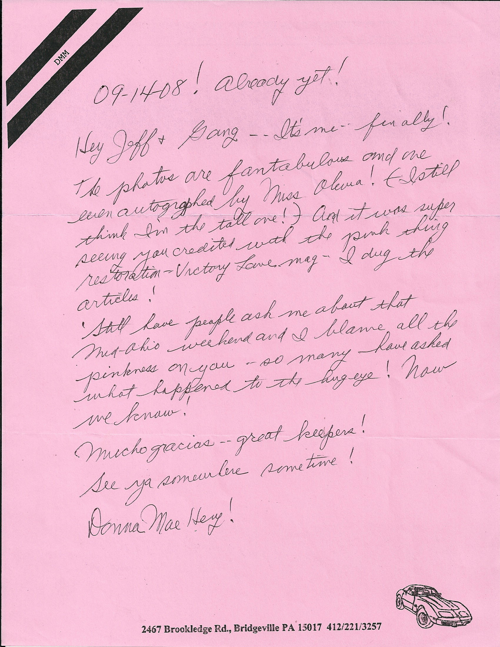 Below are Pictures, Magazine Articles, Letters to and from Donna Mae, etc.