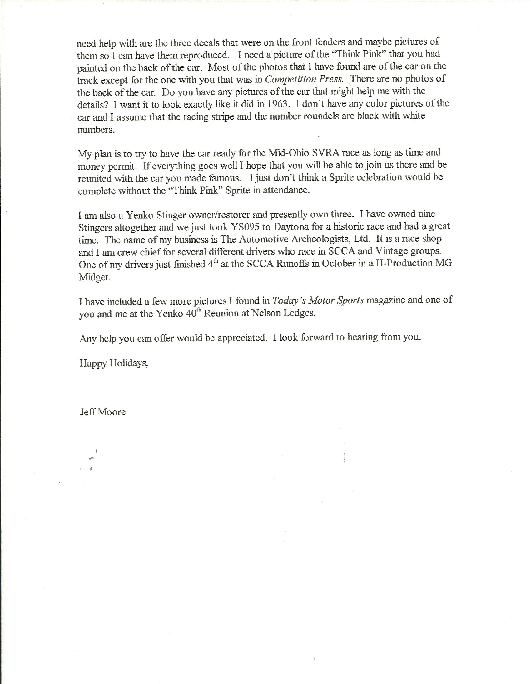 As reflected by numerous letters on pink stationery, Ms. Mims played an integral role in tracing various aspects of the Sprite’s 1963 livery for the restoration, which the consignor went to great lengths to properly replicate. Impressively documented, including coverage in recent issues of Classic Motorsports magazine, this Sprite has experienced minimal road use since restoration and could easily be campaigned in vintage racing events or appreciated at shows for its overwhelmingly authenticity and historical significance.