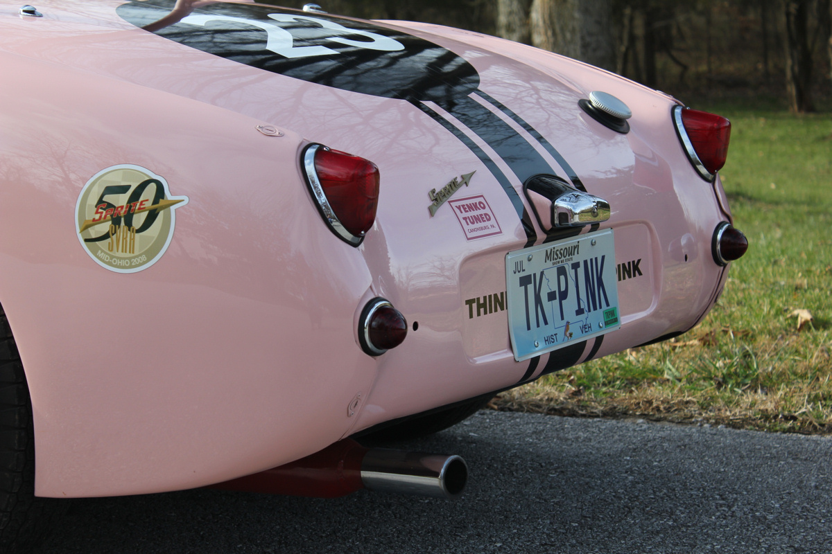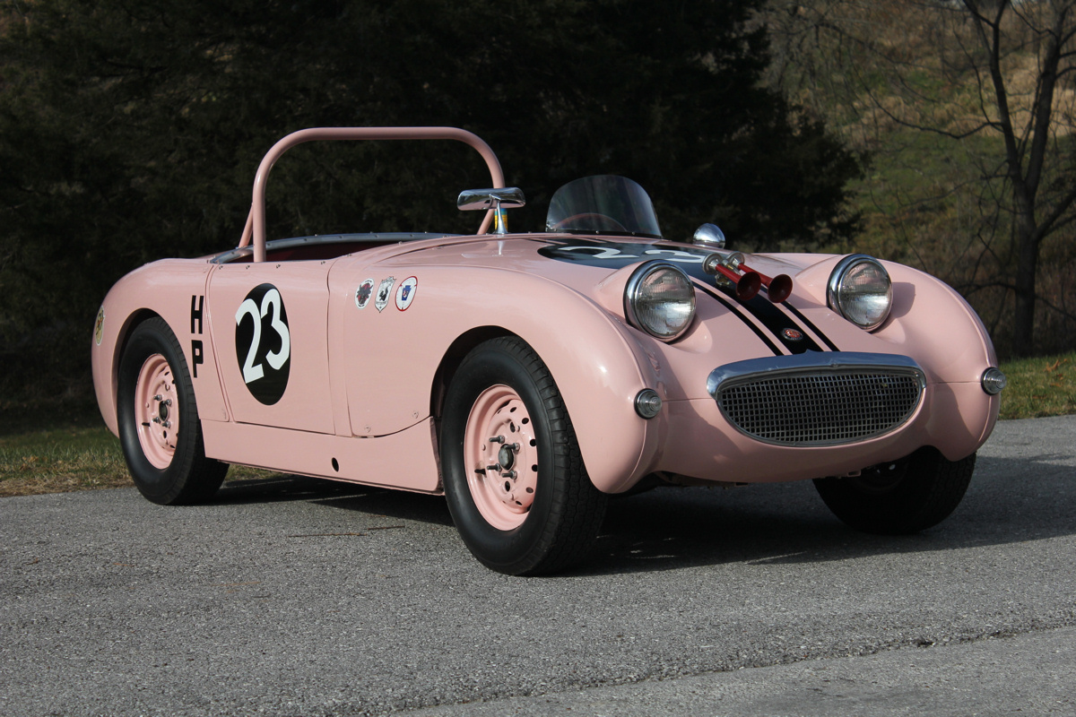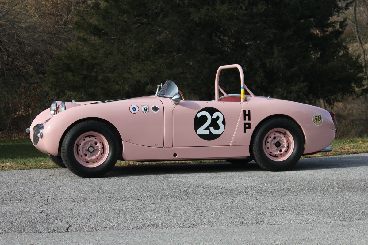 The Sprite continued to race in SCCA H-Production events by two subsequent owners until 1987. “Think Pink” was in storage until purchased by the consignor in 2005, a Missouri-based restorer, who conducted an exacting refurbishment to its 1963 Livery that included vast research into the car’s history. With the Camellia Pink exterior restored just in time for display at the 50th Anniversary Sprite celebration at Mid-Ohio in June 2008, “Think Pink” was reunited with Ms. Mims for the first time in 44 years.