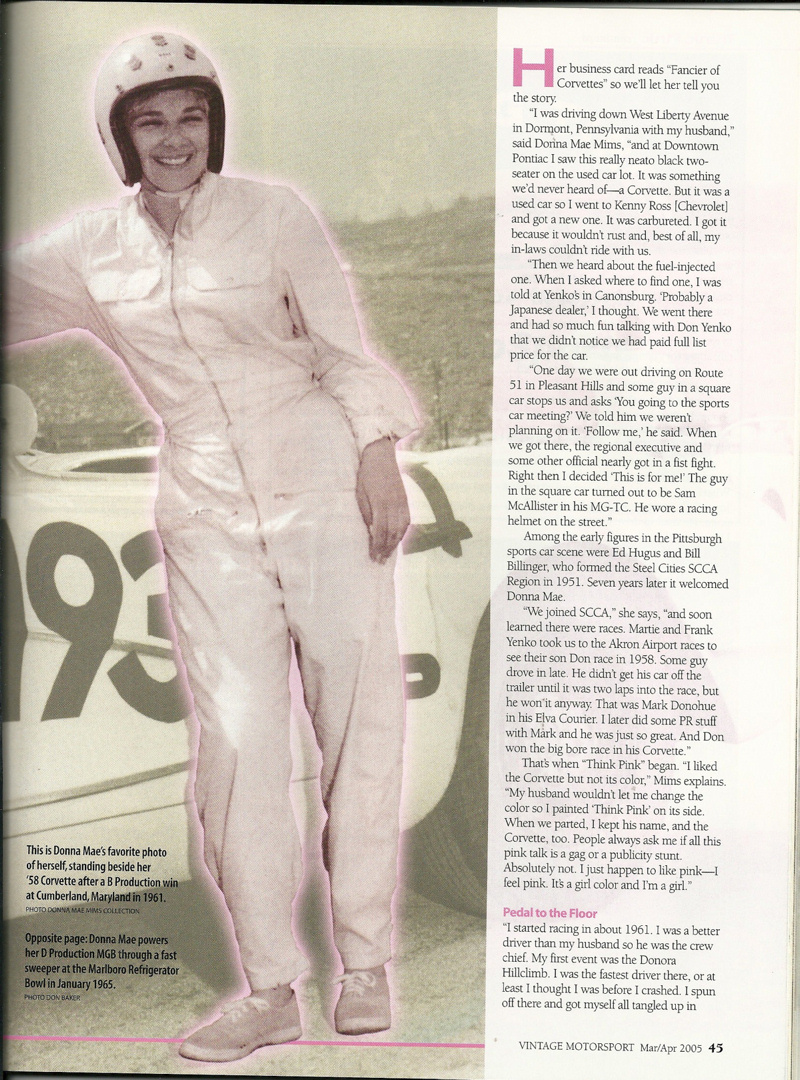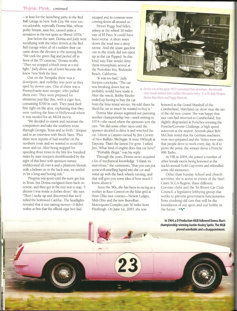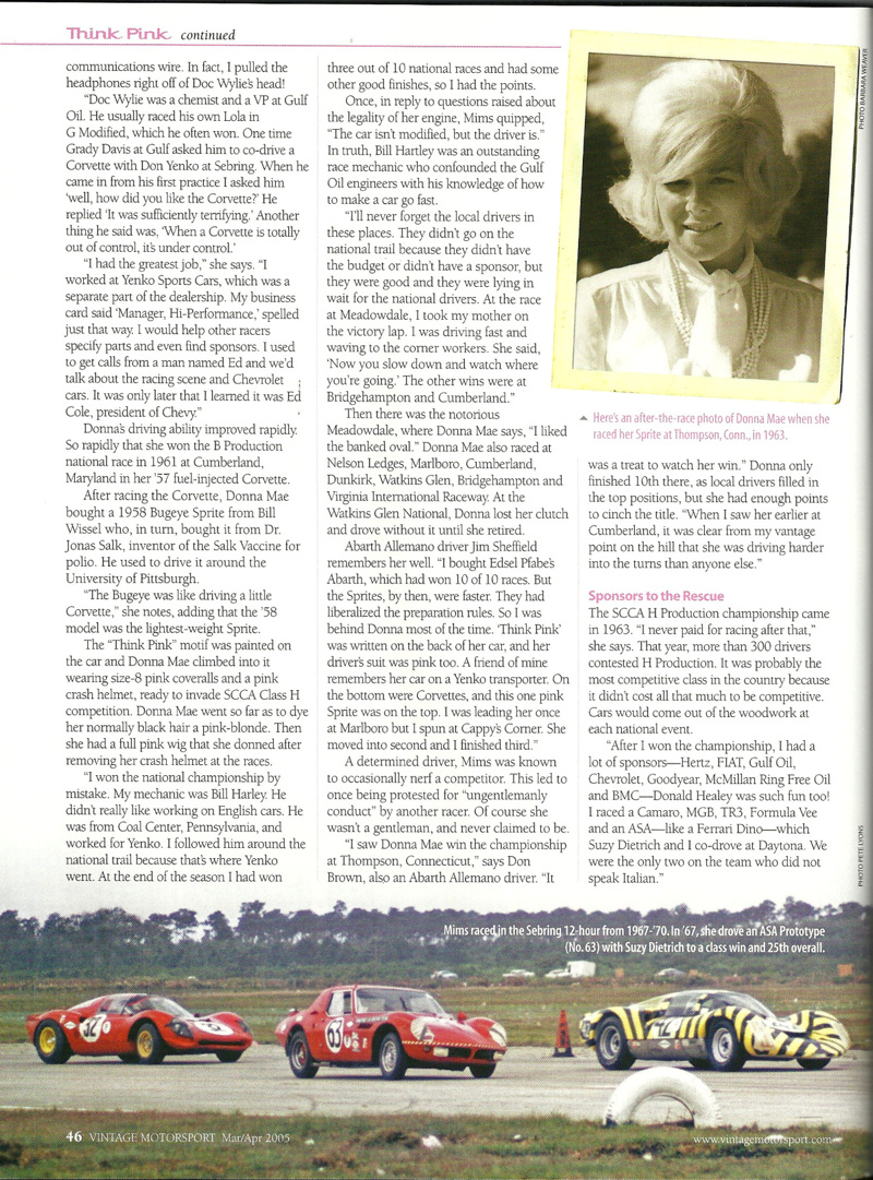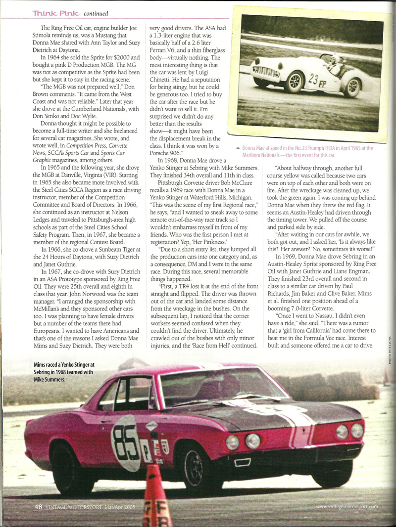 This is an article about Donna Mae published in the Mar/Apr 2005 issue of "Vintage Motorsport" magazine